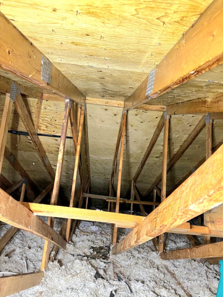 Attic - Mold growth due to poor ventilation or roof leaks
