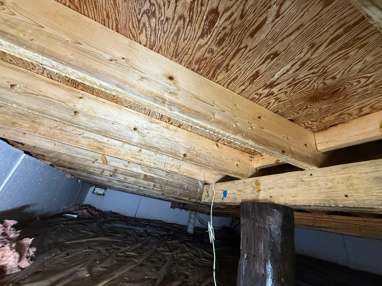 - Visible mold growth on wooden beams, joists, or insulation